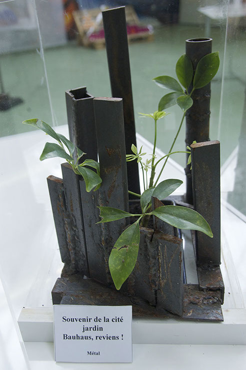 La série des Jardins ouvriers et Souvenir des cités jardins, où de jeunes pousses de plantes sont contenues dans des sculptures tubulaires en plexiglas, nous invite, à la manière du scientifique dans son laboratoire, à observer le végétal comme un élément étrange, fragile, dont les propriétés immenses seraient encore méconnues, ou comme un élément en voie de disparition et qu’il faudrait préserver.